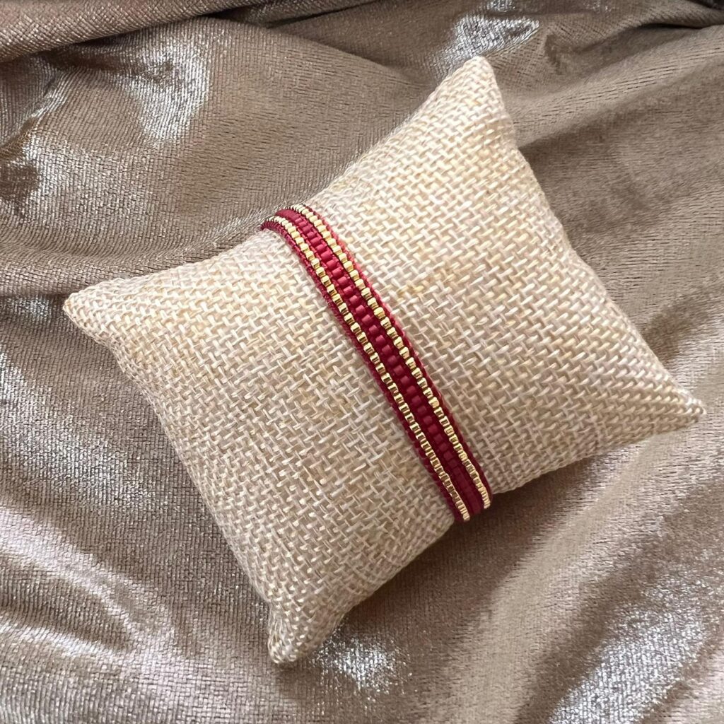 Dora By Ebru Bordo Çizgili Altın Renk Miyuki Bileklik